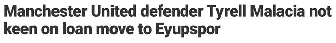 曼联夏窗传说中的「五鼠」,如今只剩下泰雷尔·马拉西亚一人。本周传闻俱乐部同意将他出租给土超的伊尤斯堡。然而,「talkSPORT电台」披露,荷兰左后卫不太乐意前往该队效力,很可能拒绝这个方案。