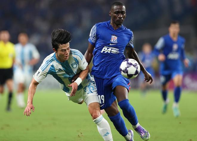 第48分钟,高天意横传经过折射制造混乱,阿苏埃禁区内凌空扫射破门,帮助申花1-0领先蔚山。