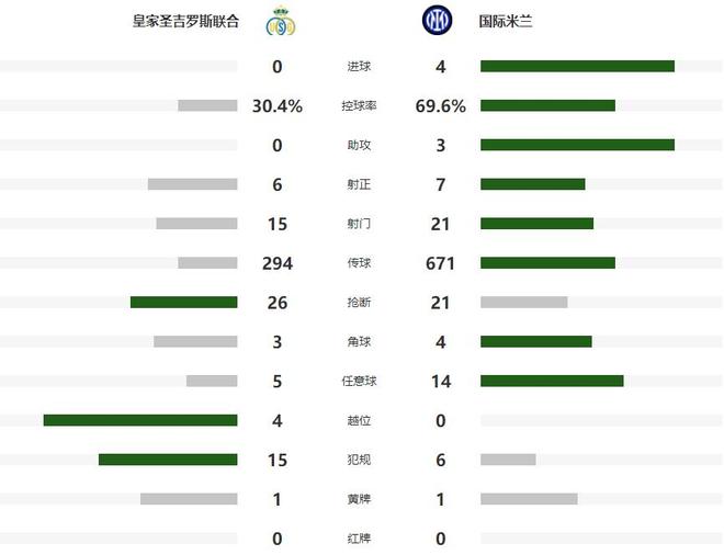 扛住主队开局三板斧之后,国际米兰开始在进攻端发威,第41分钟左侧角球开出后,比塞克头球摆渡到门前,邓弗里斯近在咫尺的打门,攻破了圣吉罗斯联合的球门,帮助国米取得了1-0的领先,半场比赛结束之前,国米扩大领先优势,劳塔罗左路前插接到埃斯波西托的无私分球后,轻松推射建功,将比分改写为了2-0,劳塔罗马丁内斯在25年欧冠联赛已经打进11球,同期独享足坛第一。