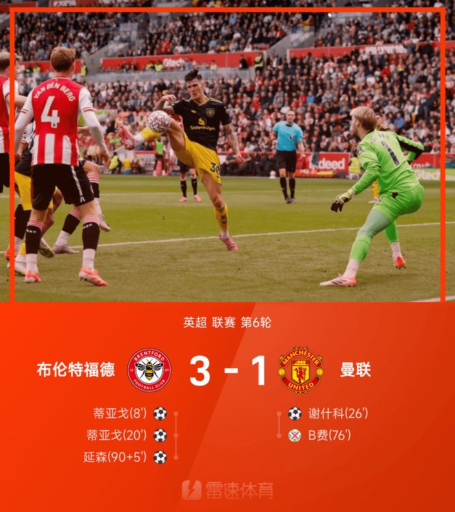 而这一剧情,几乎与几天前曼联客场1-3负于布伦特福德的比赛如出一辙。当时,曼联同样在上半场开场连丢两球,随后由谢什科打入一球,将比分追成1-2。比赛第76分钟,曼联也获得点球,但布鲁诺·费尔南德斯一脚将球踢飞,错失扳平良机。最终,布伦特福德在补时阶段再入一球,以3-1获得胜利。