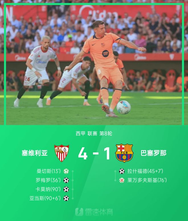 仅仅十余分钟后,塞维利亚便由卡莫纳再下一城,将比分改写为3-1,彻底击溃巴萨反扑的希望。进入补时阶段,亚当斯再入一球,最终将比分锁定为4-1,为主队献上一场酣畅淋漓的大胜。