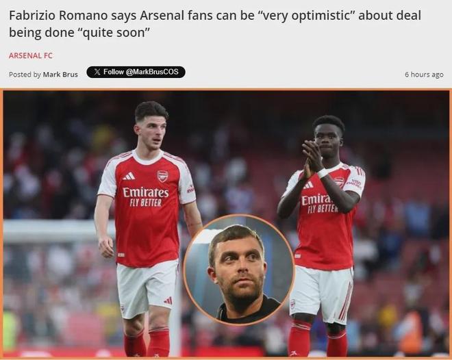 罗马诺在YouTube中表示,阿森纳续约萨卡只是时间问题。