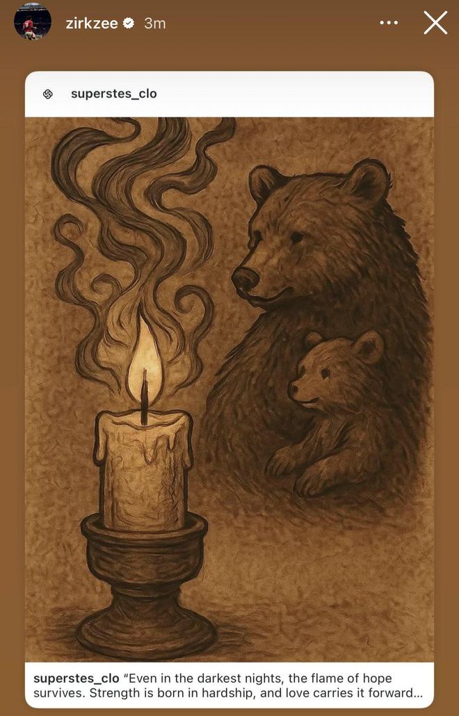 26岁的齐尔克泽只能在社媒上用「心灵鸡汤」为自己打气:「即使在最黑暗的夜晚,希望之火仍然存在。苦难之中会诞生力量,爱可以推动人奋力前行。」