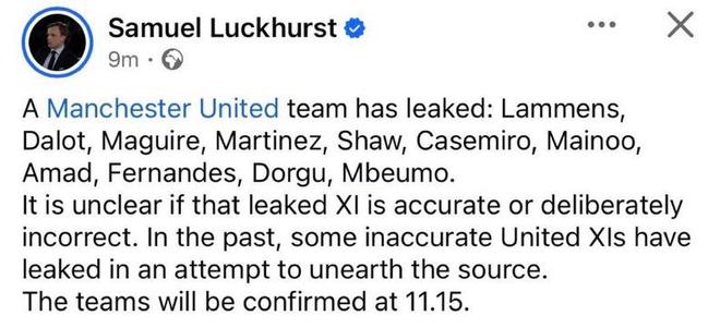 还有内鬼曼联调查德比首发提前泄密事件!穆帅至今阵容屡遭公开